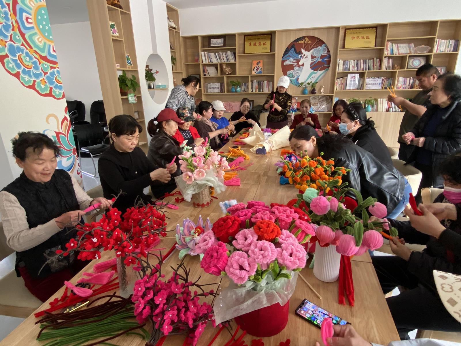 参训居民认真学习、积极实践,相互交流制作技巧,现场共完成精美花艺作品20余件,一根根普通的扭扭棒在大家手中变成了精致美观的花艺作品,现场学习氛围浓厚。大家纷纷表示,此次培训内容实用、简单易学,既丰富了业余生活,又掌握了一项实用的手工技能,也为今后灵活增收提供了新的思路。