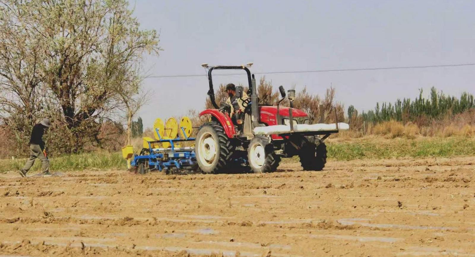 今年以来,敦煌市郭家堡镇积极探索农业产业结构调整新路,引进经营主体在大泉村试种茴香100亩,为乡村特色产业发展再添新活力。近日,在敦煌市郭家堡镇大泉村的广袤田野上,农机穿梭、一片繁忙的播种景象。