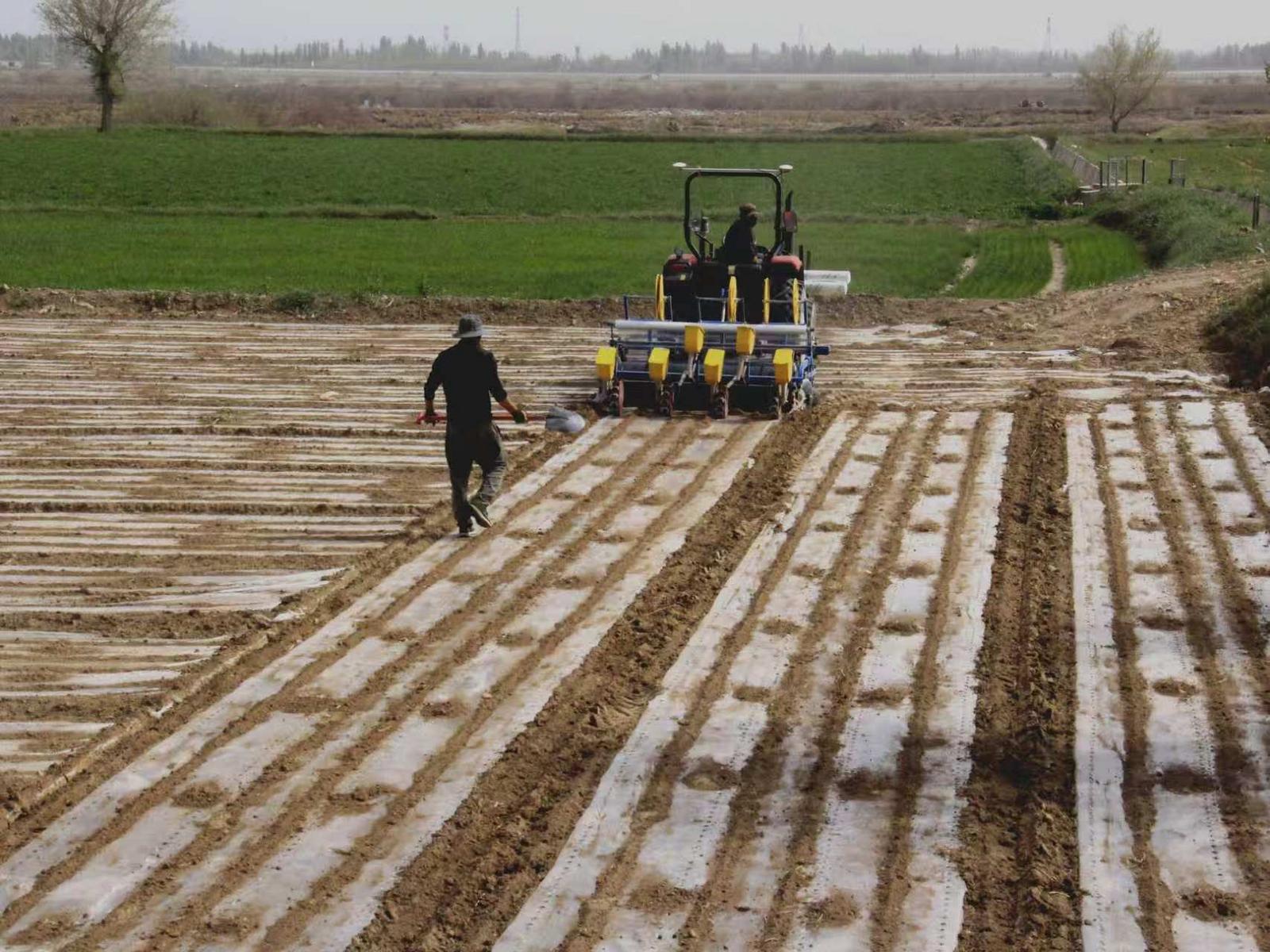 茴香作为兼具食用、调味与经济价值的特色作物,具有耐旱、适应性强、生长周期较短等特点,十分契合郭家堡镇的农业生产条件。为保障试种成功,技术人员全程指导,经营主体严格按照标准化流程作业。从深耕整地、施足底肥,到精选良种、机械条播、覆膜保墒,每个环节都精准把控。现代化的播种设备高效作业,一排排整齐的地膜铺展田间,将茴香种子稳稳植入沃土,为出苗生长筑牢基础。