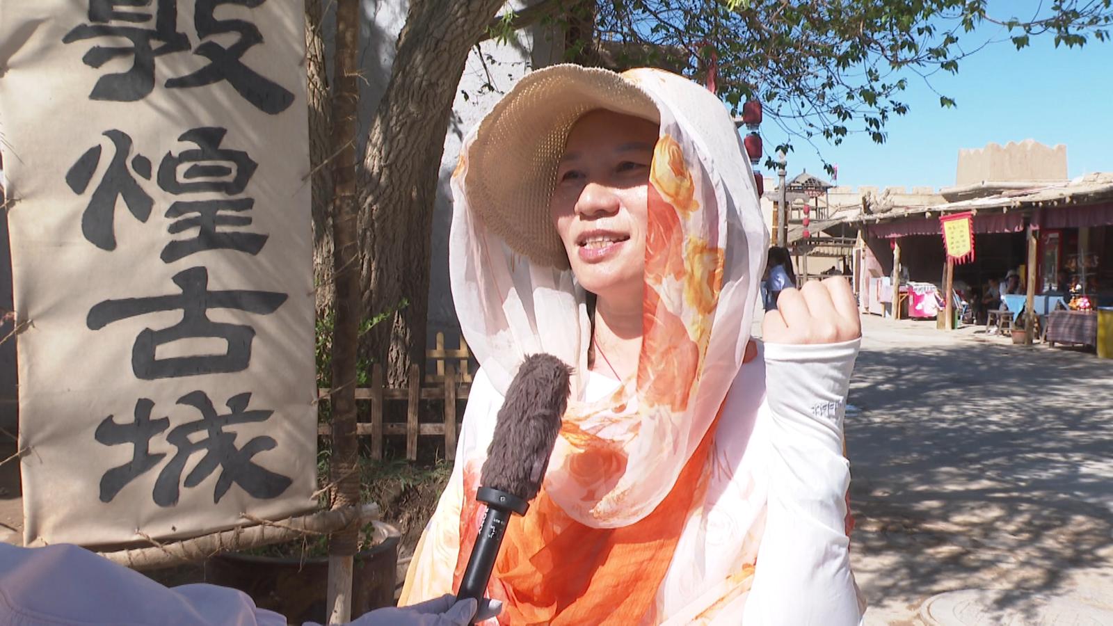 重庆游客王小琴说:“今天游玩敦煌古城,感觉特别棒,有机会我还会再来敦煌,给敦煌点赞。”
